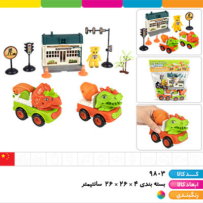 ماشین دایناسوری قدرتی مفصلی با کلبه مغازه و آدمک و لوازم