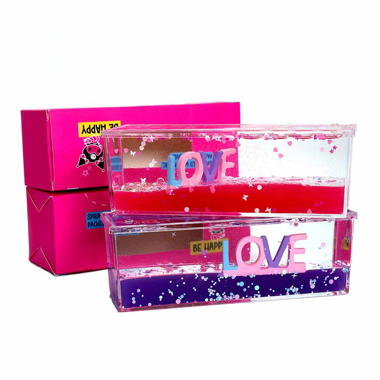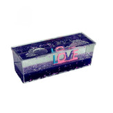شناور love صورتی و بنفش، بصورت یک مکعب مستطیلی است که با مایع شفاف به رنگ صورتی یا بنفش پر شده است و المان love زیبای پلاستیکی داخل این مایع، شناور است.