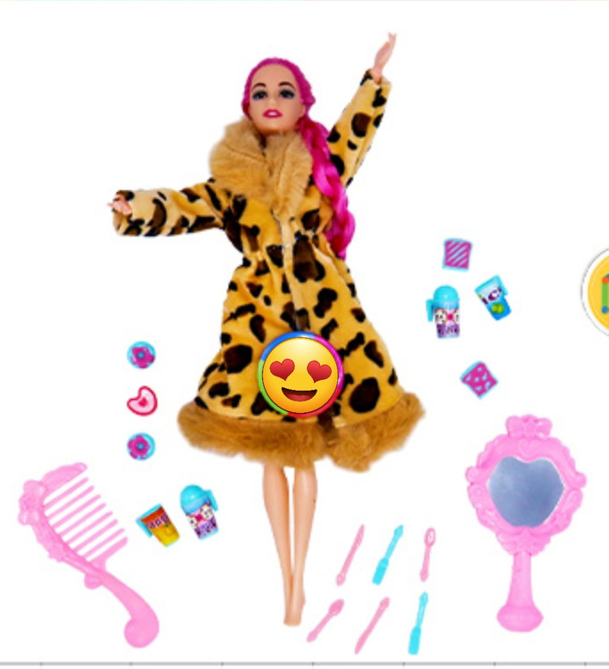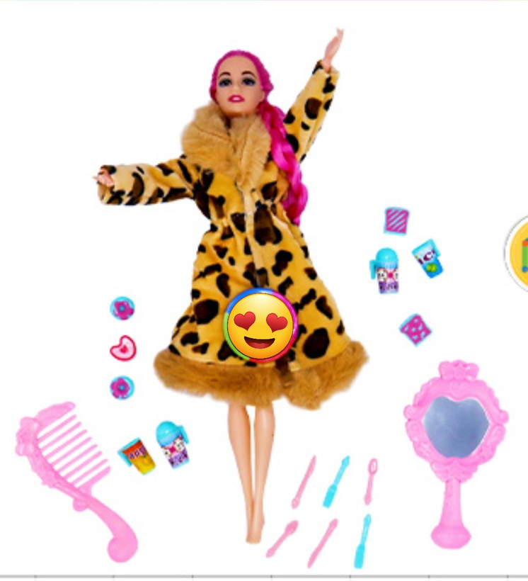 باربی تمام مفصلی زمستانی با پالتو پلنگی قهوهای و لوازم خارجی