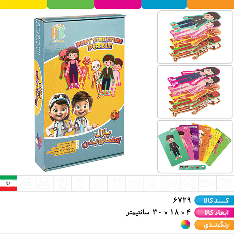 پازل آموزشی ۵لایه اعضای بدن ۲زبانه دخترانه و پسرانه