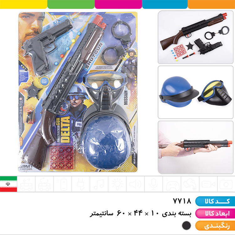 مجموعه تفنگ شاتگان و کلت ترقه ای با کلاه و ماسک