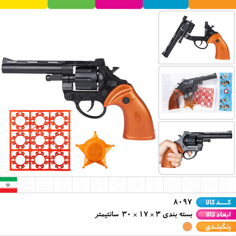 مجموعه تفنگ مگان ترقه ای سلفونی طلایی