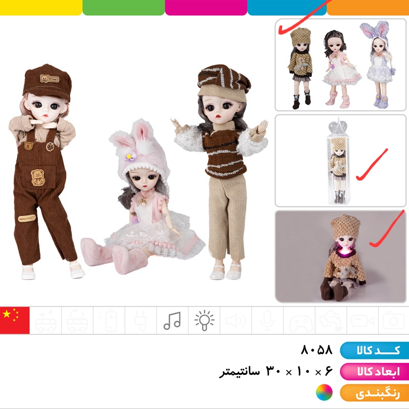 عروسک مفصلی چشم تیله ای موزیکال خارجی